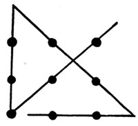 - ¿Puedes trazar cuatro líneas rectas, sin levantar la punta del lápiz del papel, que pasen por los nueve puntos de la ilustración?
