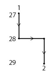 Otro ejemplo: ¿de cuántas formas puede caminar desde la 1 y la 27, hasta la 2 y la 29? (NOTA: no se cuentan las cuadras, sino cada vez que uno tiene que o bien bajar o bien doblar a la derecha.)