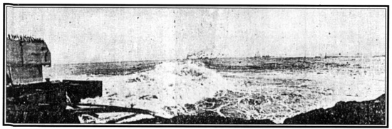 Un aspecto de la destrucción de las obras del puerto artificial, por el mismo temporal.