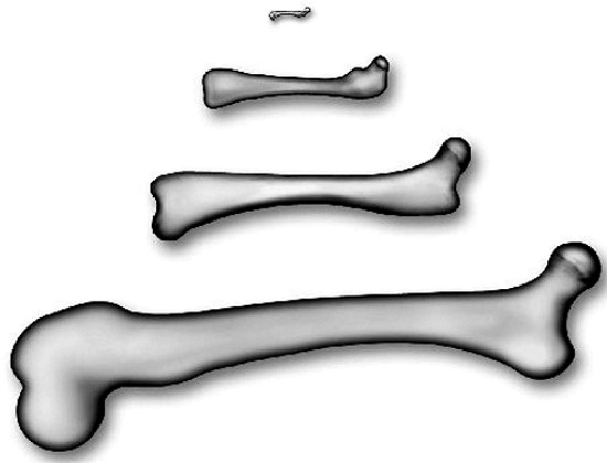 Llamemos «d» (de diámetro) al grosor del fémur. Entonces, según Galileo, la masa del mamífero sería proporcional a d2 (de forma que los huesos puedan soportar el peso del mamífero), pero también, independientemente de lo que pensase Galileo, es proporcional a l3. Así que, si Galileo estaba en lo cierto, d2 debería ser proporcional a l3, que equivale a decir que d debería ser proporcional a l3/2.