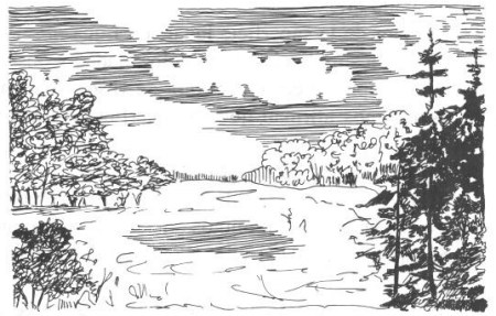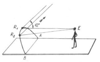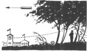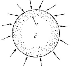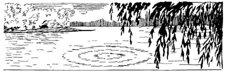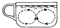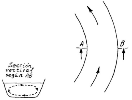 En esto no hay nada de extraño: analizando detenidamente el fenómeno descrito concluiremos que las ondas que surgen alrededor del punto donde cae la piedra, deben tener forma circular tanto en el agua corriente como estancada. Vamos a examinar el movimiento de las partículas de agua agitada como resultado de dos movimientos: uno radial (desde el centro de oscilaciones) y otro de traslación (según la corriente del río). Un cuerpo que participa en varios movimientos se traslada, en resumidas cuentas, hacia el punto donde se encontraría si realizara sucesivamente dichos movimientos. Por tanto, supongamos primeramente que la piedra ha sido arrojada en un agua quieta. En este caso está claro que las ondas que surgen son circulares.