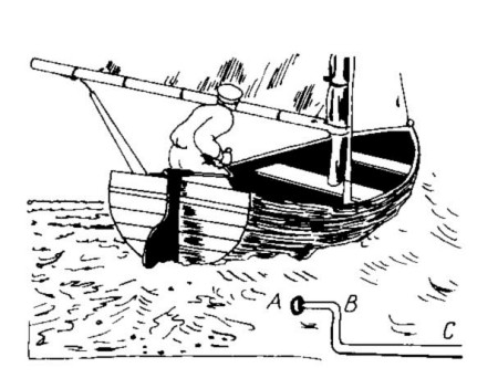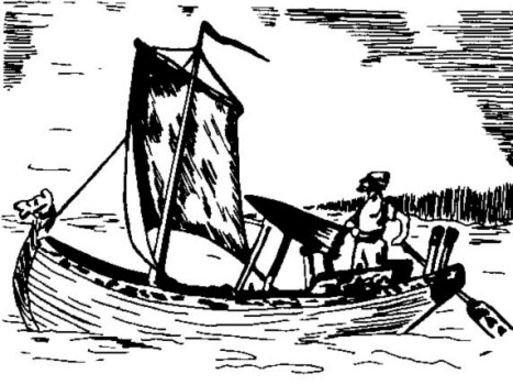 Por supuesto, es más difícil bogar corriente arriba que corriente abajo. Mas, si se quiere alcanzar un punto que se desplaza con la misma velocidad, por ejemplo, la mencionada astilla, la situación se torna distinta. Hay que tener en cuenta el hecho de que la lancha que flota a favor de la corriente se encuentra en reposo respecto del agua que la lleva. De modo que el remero maneja los remos del mismo modo que en el agua de un estanque. En éste da igual bogar en cualquier dirección; lo mismo ocurre en nuestro caso, encontrándose en medio de agua corriente.
