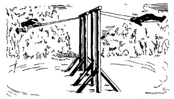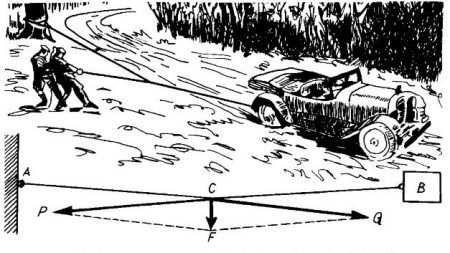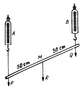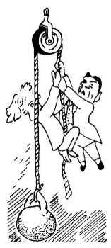 Esta es una pregunta superflua, pues para mover un peñasco no se necesitan árboles: se puede realizar esta operación sólo con las manos. Calculemos las dimensiones del peñasco, que no se mencionan en el problema (cosa que no puede menos que provocar sospechas) y todo estará claro. Si pesa 30.000 N, mientras que la densidad del granito es de 3000 kg/cm3, su volumen valdrá 1 m3. Como la peña apenas mide 30 m de largo y unos 5 m de alto, su grosor será de