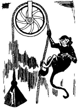 1) En el caso de la caída «superacelerada» los puntos en que están fijados los extremos de la cadena, descenderán más rápidamente que sus eslabones; estos últimos, a su vez, tenderán a caer con una aceleración g < g1. Los eslabones medios quedarán rezagados de los extremos, de modo que la cadena se arqueará hacia arriba por la acción del exceso de aceleración g1 - g, dirigido también hacia arriba. En otras palabras, la cadena parecerá estar cayendo hacia arriba con la aceleración g1 - g.