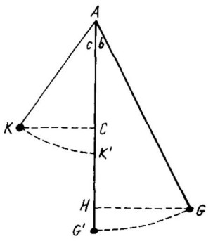 2) Por esta misma causa el péndulo se volverá «patas arriba» y oscilará en torno a la posición de aplomo con un período