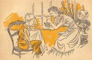 -¡Diablo de chico! ¡Cuándo acabaré de aprender sus mañas! ¡Cuántas jugarretas como ésta no me habrá hecho, y aún le hago caso! Pero las viejas bobas somos más bobas que nadie. Perro viejo no aprende gracias nuevas, como suele decirse. Pero, ¡Señor!, si no me la juega del mismo modo dos días seguidos, ¿cómo va una a saber por dónde irá a salir? Parece que adivina hasta dónde puede atormentarme antes que llegue a montar en cólera, y sabe, el muy pillo, que si logra desconcertarme o hacerme reír ya todo se ha acabado y no soy capaz de pegarle. No; la verdad es que no cumplo mi deber para con este chico: ésa es la pura verdad. Tiene el diablo en el cuerpo; pero, ¡qué le voy a hacer! Es el hijo de mi pobre hermana difunta, y no tengo entrañas para zurrarle. Cada vez que le dejo sin castigo me remuerde la conciencia, y cada vez que le pego se me parte el corazón. ¡Todo sea por Dios! Pocos son los días del hombre nacido de mujer y llenos de tribulación, como dice la Escritura, y así lo creo. Esta tarde se escapará del colegio y no tendré más remedio que hacerle trabajar mañana como castigo. Cosa dura es obligarle a trabajar los sábados, cuando todos los chicos tienen asueto; pero aborrece el trabajo más que ninguna otra cosa, y, o soy un poco rígida con él, o me convertiré en la perdición de ese niño.
