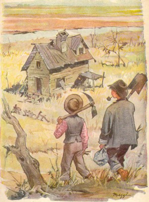 Desapareció, y a poco se presentó con el carro, puso en él los dos sacos, los tapó con unos trapos y echó a andar arrastrando su carga. Cuando llegaron frente a la casa del galés se pararon para descansar. Ya se disponían a seguir su camino, cuando salió el galés a la puerta.