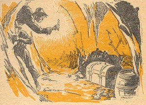 -Ahora, Huck -dijo Tom-, vamos a esconder el dinero en el desván de la leñera de la viuda, y yo iré por la mañana a contarlo para hacer el reparto, después buscaremos un sitio en el bosque donde esté seguro. Tú te quedas aquí y cuidas de los sacos, mientras yo voy corriendo y cojo el carrito de Benny Taylor. No tardo un minuto.