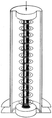 Figura 32. El diamagnetismo de los superconductores se puede usar para crear cojinetes sin rozamiento, en los cuales el eje no toca los apoyos, sino que las líneas de fuerza del campo magnético lo mantienen en suspenso.