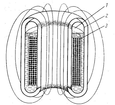 Es fácil imaginarse qué aspecto tendría el sistema magnético superconductor de un generador MHD. Dos arrollamientos superconductores están ubicados a los lados del canal con plasma, separado de los devanados por un termoaislamiento de capas múltiples. Los devanados se fijan en cajas portadoras de titanio y entre éstas se colocan espaciadores de titanio. Dicho sea de paso, estas cajas y espaciadores deben ser tremendamente resistentes, puesto que las fuerzas electrodinámicas en los devanados tienden a desgarrarlos y atraer mutuamente. Esas fuerzas son bastante grandes, por ejemplo, en un campo de 50 mil Oe, los elementos de la construcción estarán sometidos a una presión de 100 atm.