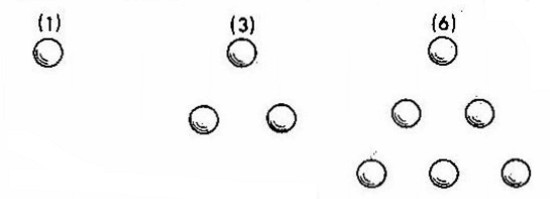 (segunda línea o segunda columna del rectángulo de Tartaglia). Los términos de esta sucesión se llaman números triangulares: 1 es el primer número triangular; 3, el segundo; 6, el tercero, etc.; el m-ésimo número triangular es igual a T 2 m+1 .