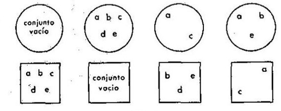 Ejemplo . Consideraremos un conjunto compuesto por tres objetos: lápiz, pluma y goma de borrar. Hallemos todas sus parles. Se tiene exactamente una parte de cero elementos, o sea, un conjunto vacío. Hay exactamente tres partes de un elemento: