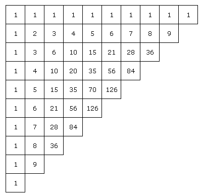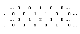 Por lo tanto, nuestro "triángulo de Pascal" difiere del "triángulo" que consideró el mismo Pascal con giro a 45°.
