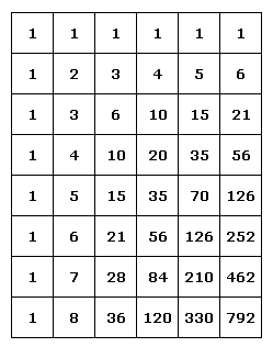 Sin embargo, cien años antes de que naciera el tratado de Pascal, la tabla que es de interés para nosotros, sólo no en la forma "triangular", sino en la "rectangular", fue publicada en el "Tratado general sobre el número y la medida" (1556-1560) que también vio la luz, en parte, después de la muerte de su autor, el distinguido matemático italiano Nicolás Tartaglia. Su tabla tenía la siguiente forma: