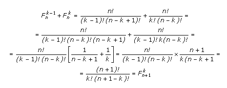 Expresemos ahora la operación de Pascal por la de cálculo de la factorial y las operaciones aritméticas. Con este propósito se considerará la siguiente expresión: