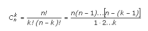 En otras palabras, C k n es el número de partes k del conjunto de n elementos. Suele considerarse que C k n tiene sentido cuando n = 0, 1, 2,..., 0 £ k £ n.